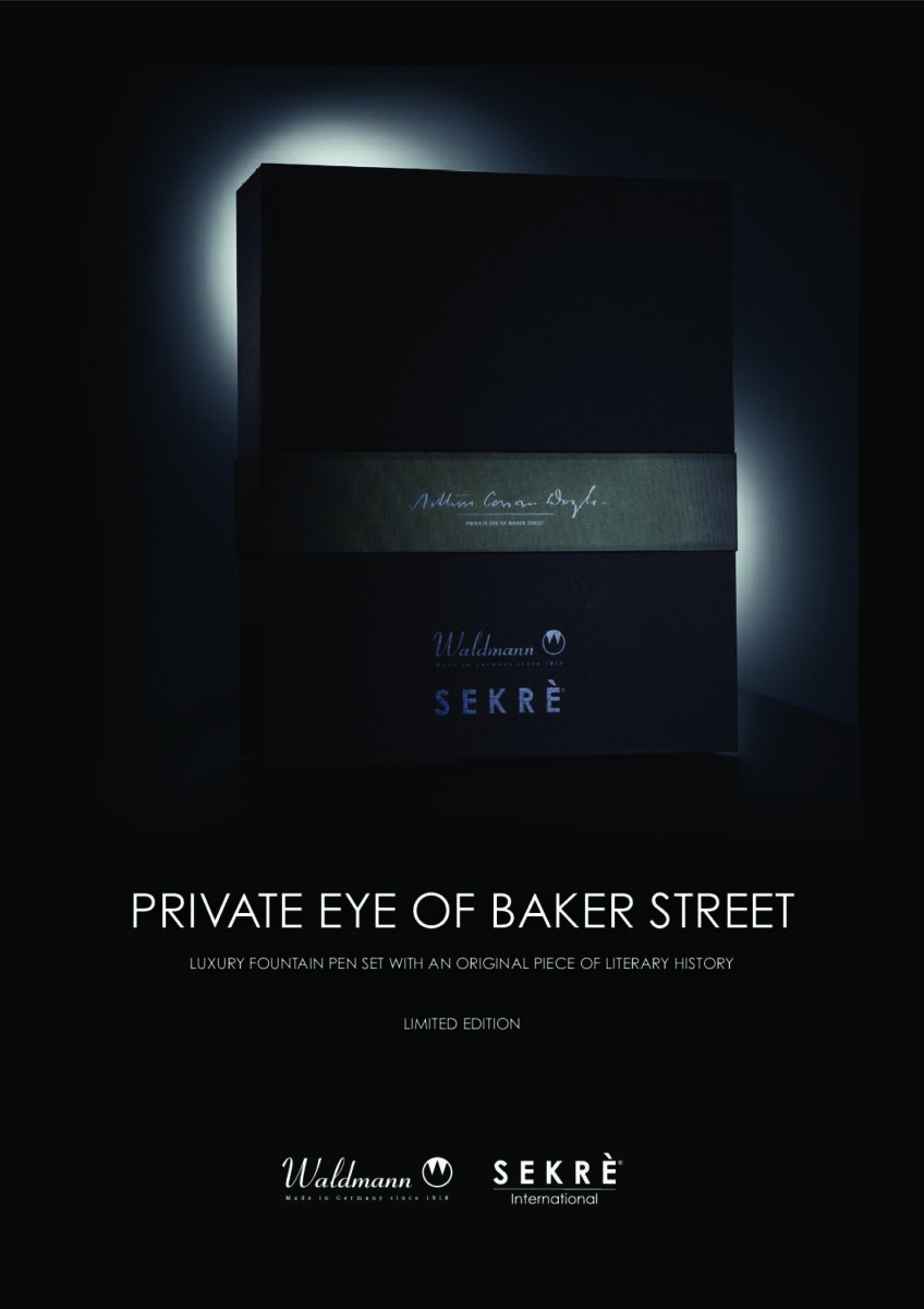 Stöbern Sie gerne in der aufwändig gestalteten Begleitbroschüre zum Füllfederhalter “Private Eye of Baker Street”: